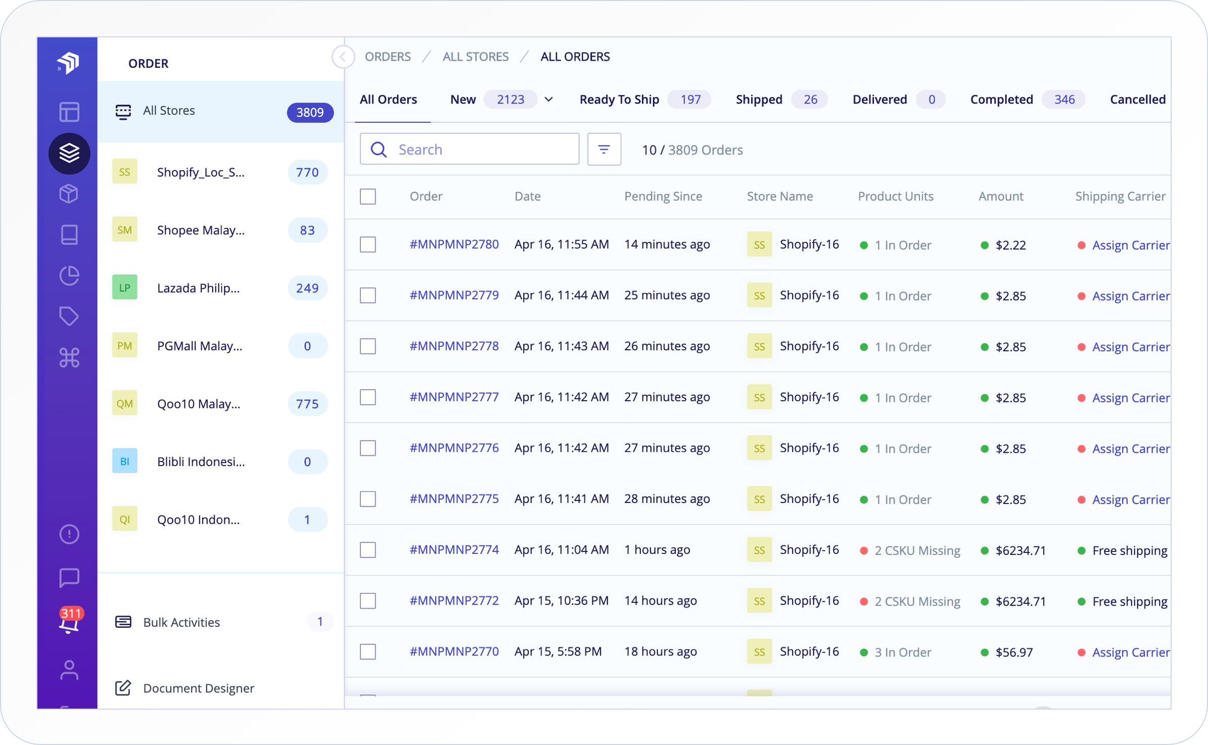 With your business present on multiple online & offline sales channels, use SelluSeller to consolidate, plan & track your entire order processing flow on a central dashboard.